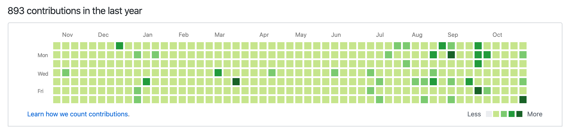 플러그인을 설치하고 본 Contributions 챠트 입니다. 뽀대납니다.