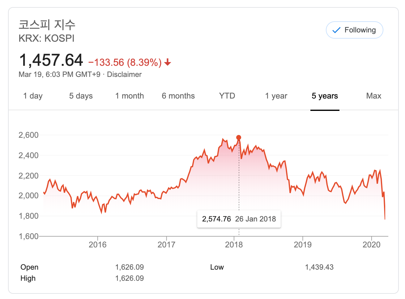워낙 지수들이 급하게 떨어져서 오히려 별로 감이 없네요. 어렸을 적 IMF 때는 정말 큰일이 났다는 느낌이었는데요. 지금은 어떤 상황인지 감이 잘 안옵니다. 코로나19 때문에 재택근무하면서 집에만 있어서 그런 걸까요? 미래의 제가 이 글을 본다면 또 어떤 느낌일지 모르겠습니다.