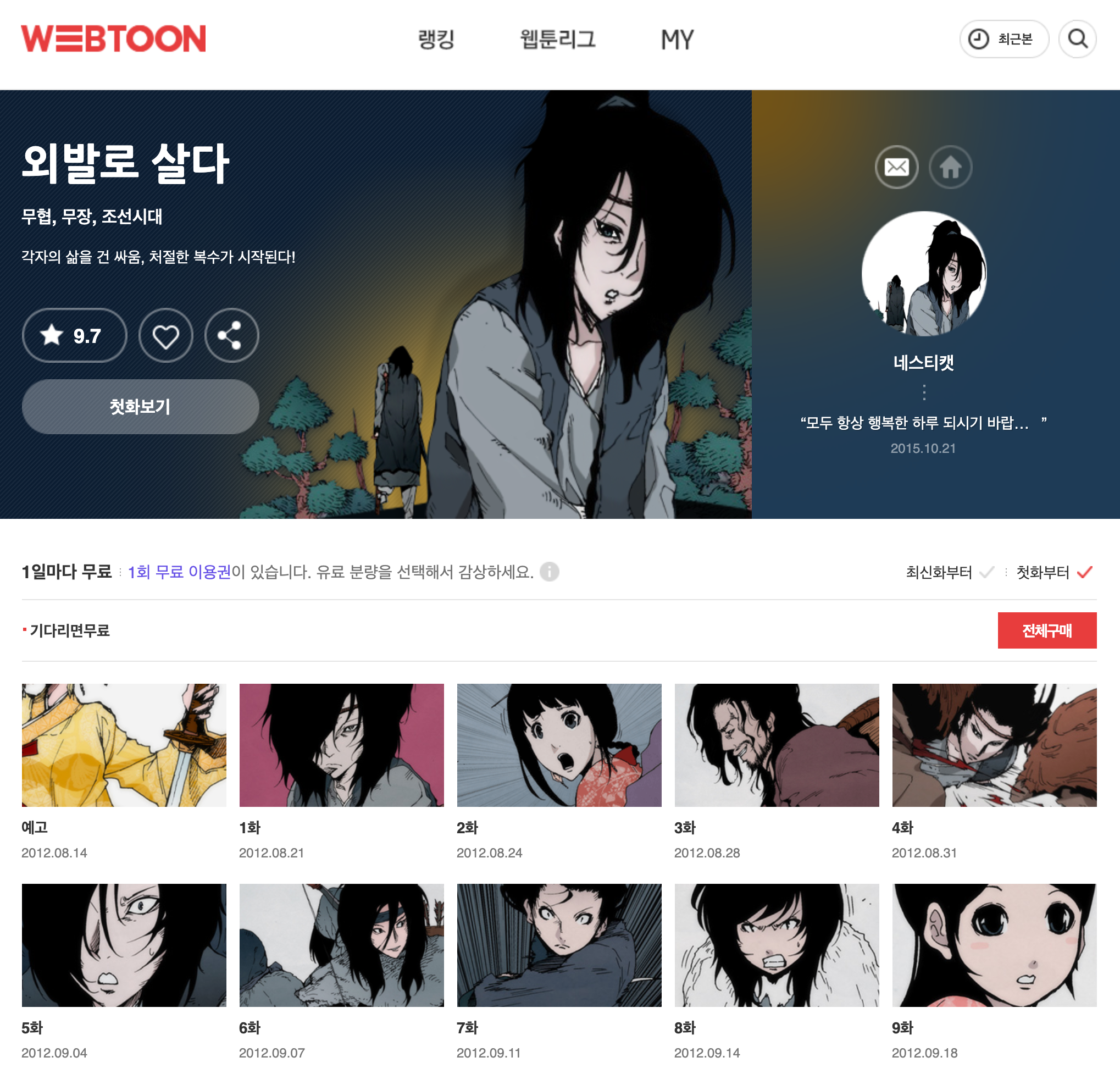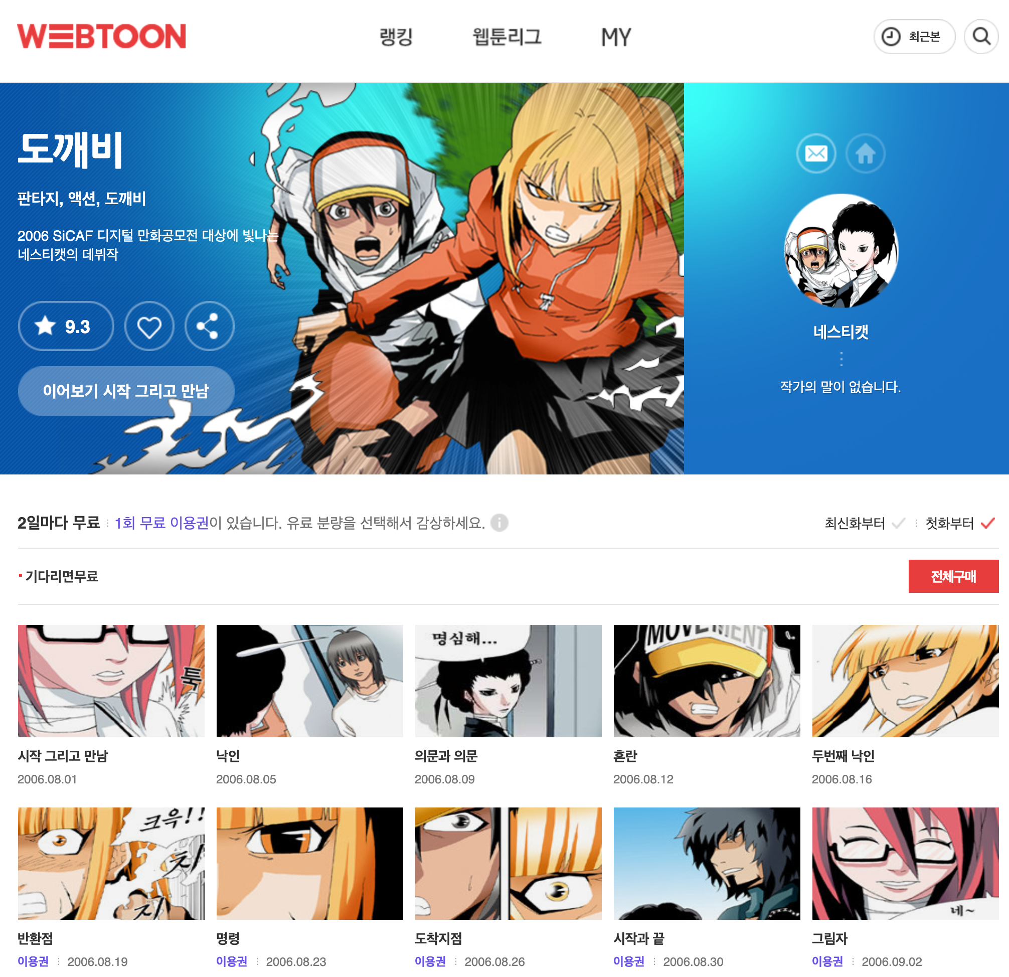 아마도 다음웹툰에서 가장 장수 연재하고 있는 웹툰이 아닐까 싶습니다. 과거 회차들을 확인 해 보니 무려 2007년부터 연재되고 있었네요.