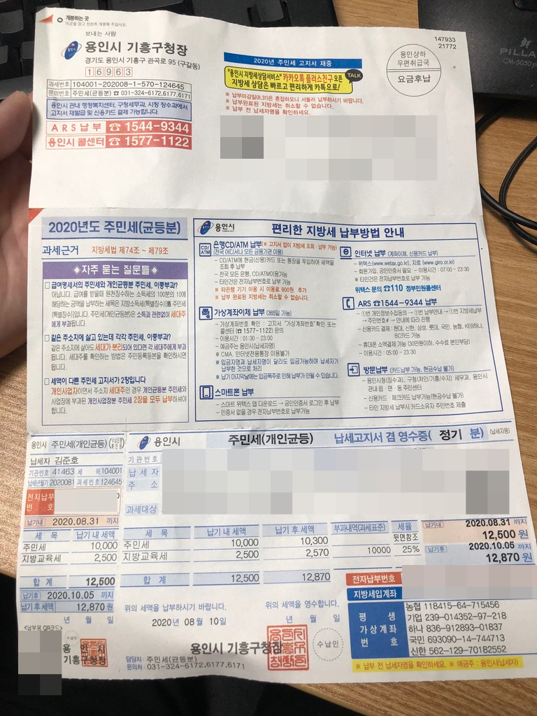 잊을만하면 날아오는 세금고지서가 있습니다. 자동차세와 주민세입니다. 오늘 주민세 납부 고지서가 날아왔습니다.