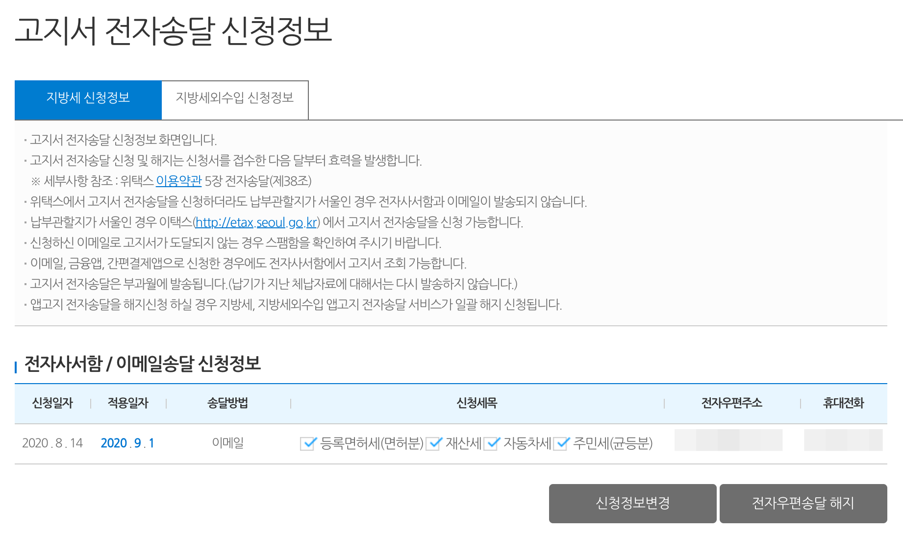 "고지서 전자송달 신청정보"페이지에서 신청정보를 확인할 수 있습니다.
