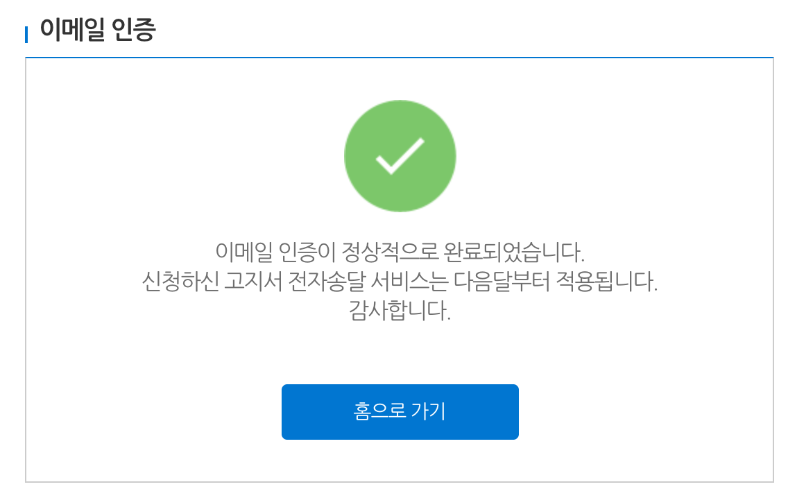 이메일을 선택하더라고 전자사서함에서 고지서 조회가 가능하다고 하니 굳이 고지서 전자사서함을 선택할 필요는 없어 보입니다. 그리고 일단 이메일로 신청하긴 하지만 카카오톡에서 신청하면 카카오톡으로도 받을 수 있는 거 같습니다. 다음에 카카오톡으로 변경할까 싶습니다.