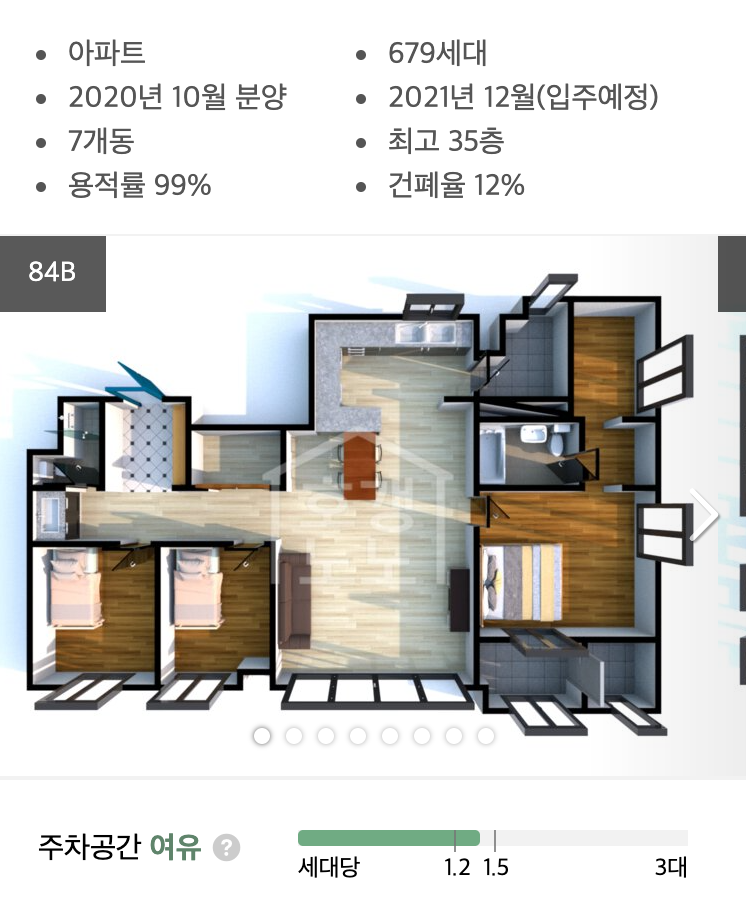 제가 관심 있는 사이즈는 84인데요. 가격은 대략 7~8억 정도입니다. 저에게는 비싼 금액이긴 하지만 주변 시세에 비하면 많이 저렴하다고 하네요.