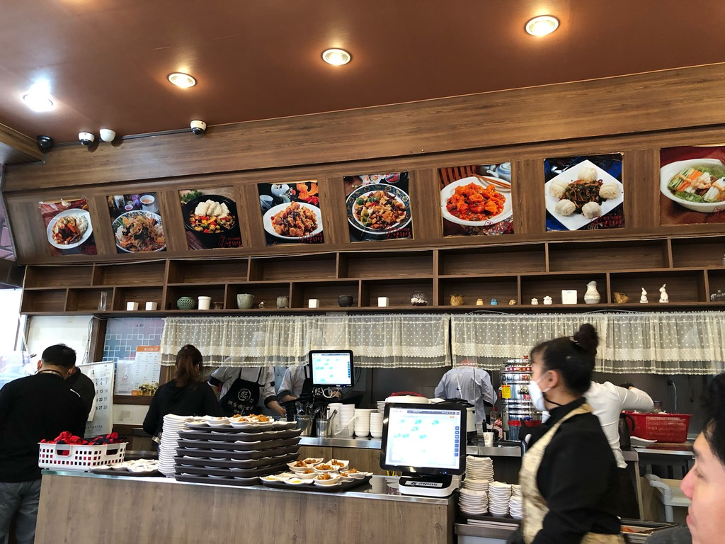 홀의 모습입니다. 음식들 사진이 전시되어 있네요. 주방에서는 요리사들이 분주히 요리를 하고 있습니다.