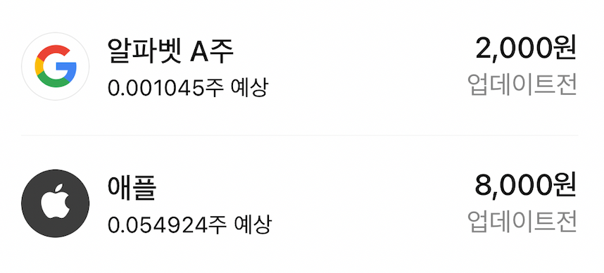 저는 애플 8,000원과 구글(알파벳 A 주) 2,000원을 선택했습니다.