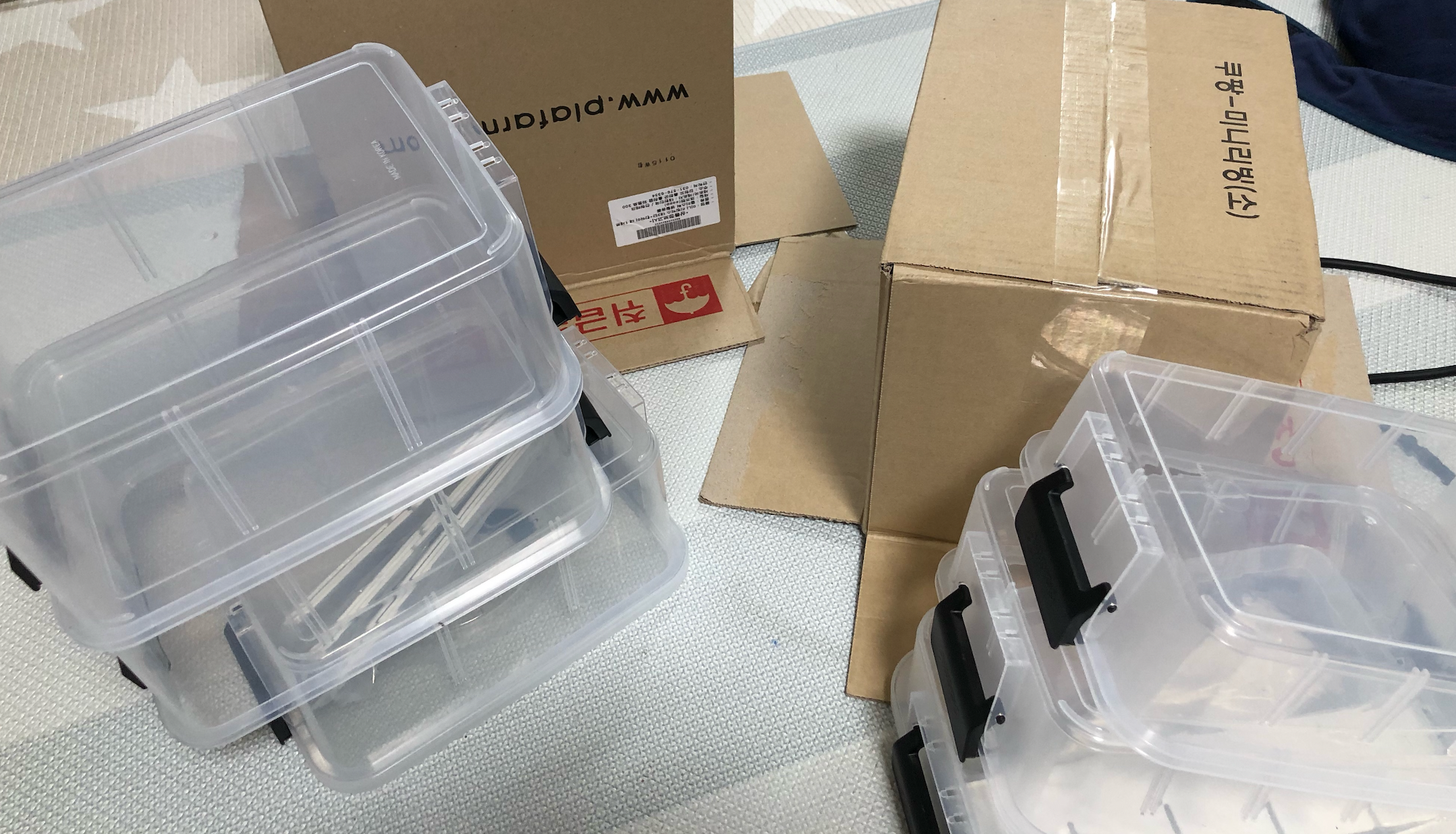 이마트에서 구입한 부품함의 높이는 4cm, 플라팜 소 사이즈 높이는 7cm, 대 사이즈 높이는 11cm입니다.