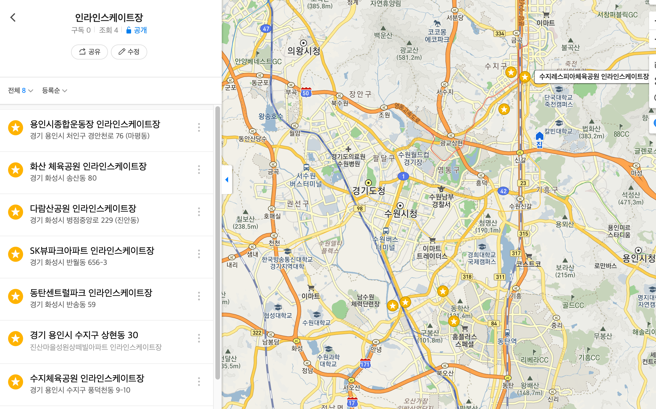 주변에 있는 인라인 스케이트장들을 정리해 보고 있습니다.