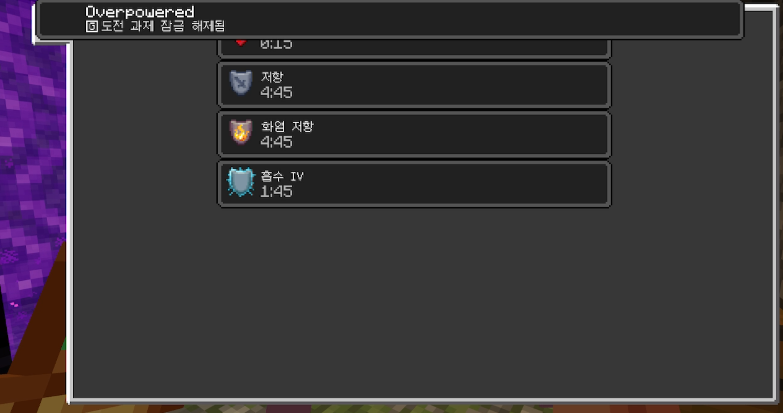 마인크래프트 - 효과부여사과 너무 안나옴 #서바이벌 #도전과제 #압도적인힘 #베드락 본문