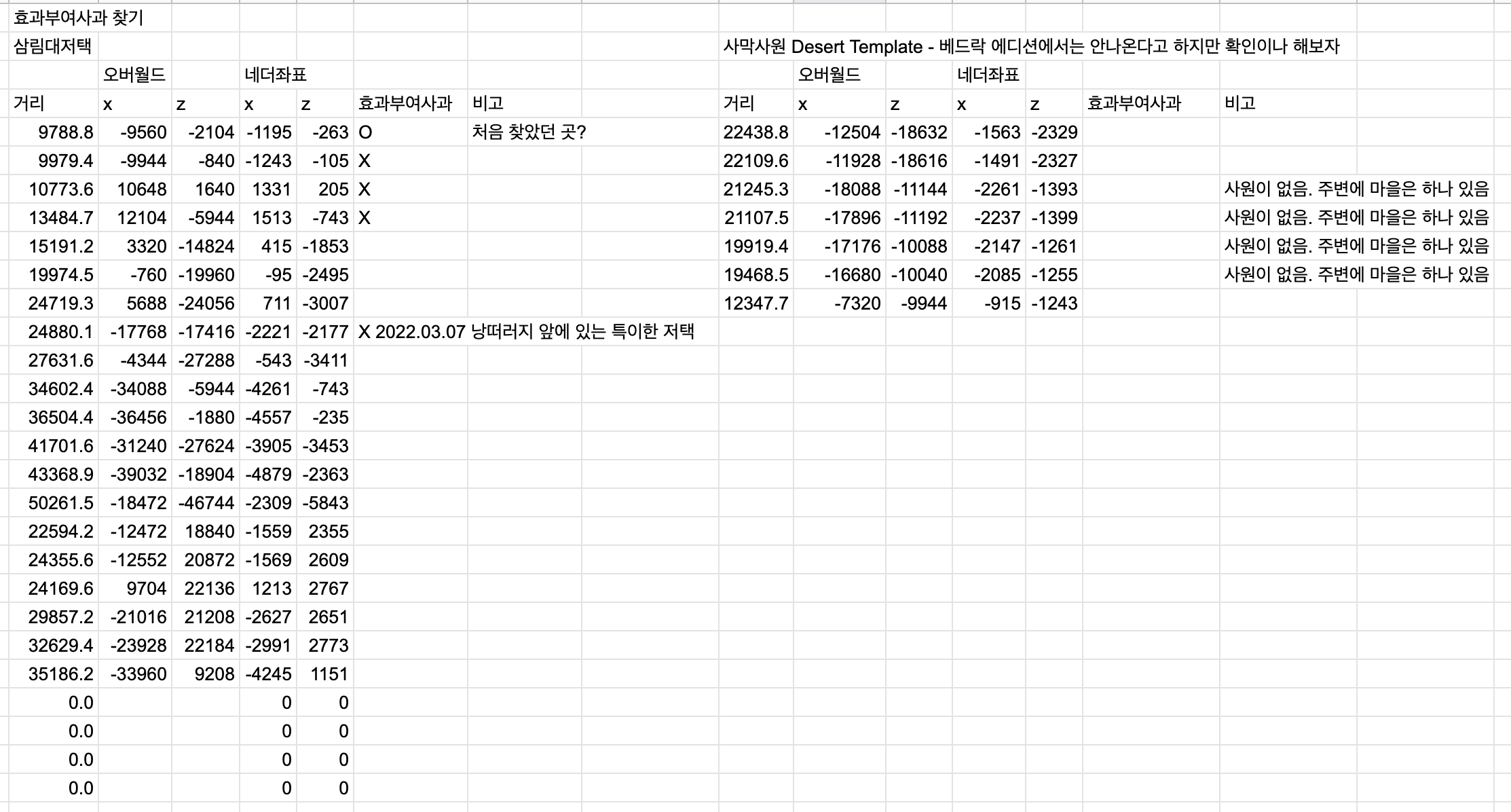 아무튼 삼림 대저택을 뒤지기 시작했습니다. 몇 군데 다니다 보니 갔던 곳 기억을 못 할 거 같아서 시트까지 정리해 가며 찾아보았습니다.
