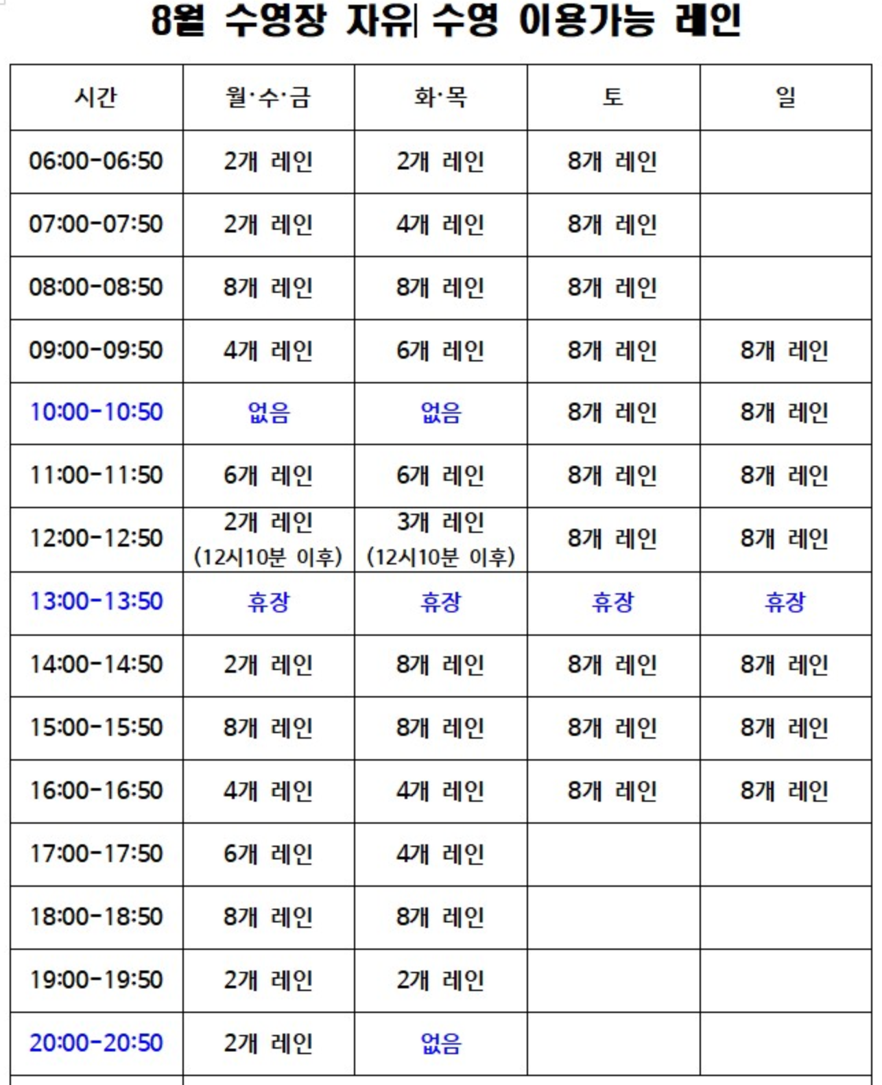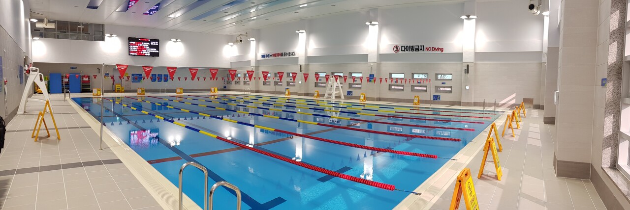 8개의 레인으로 되어 있고 유아풀이 별도로 있습니다.