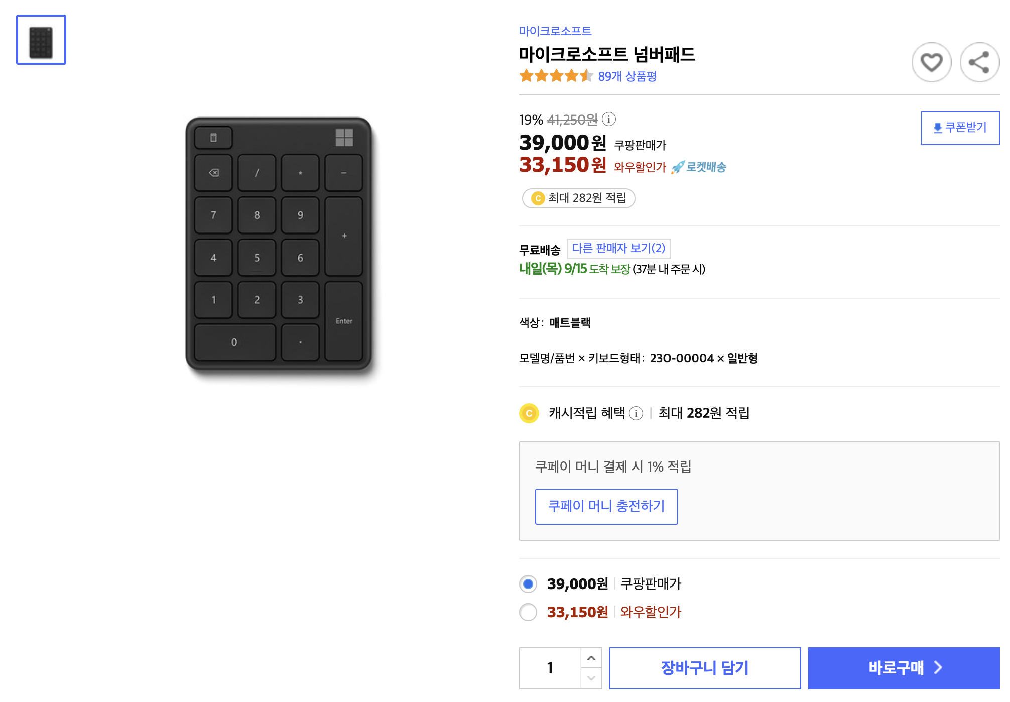 그래서 일단 조금 아쉽지만 마이크로소프트 숫자 키패드를 이용해 보려고 합니다.