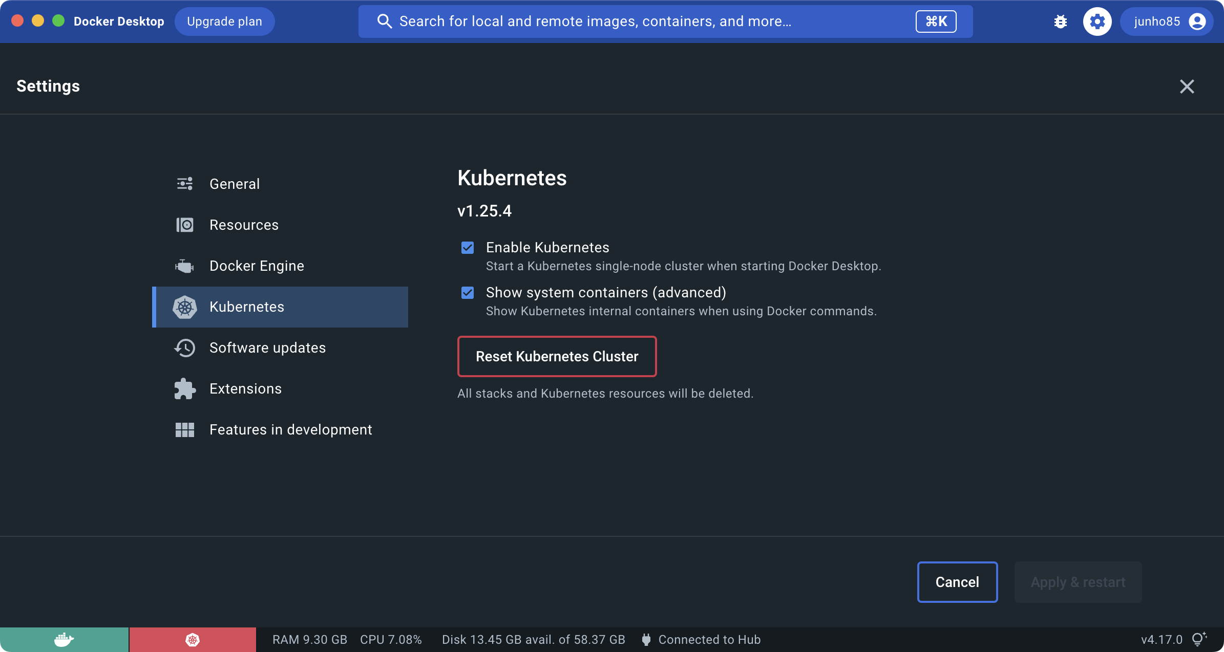 Docker Desktop Kubernetes가 Starting... 에서 진행이 안될때 본문