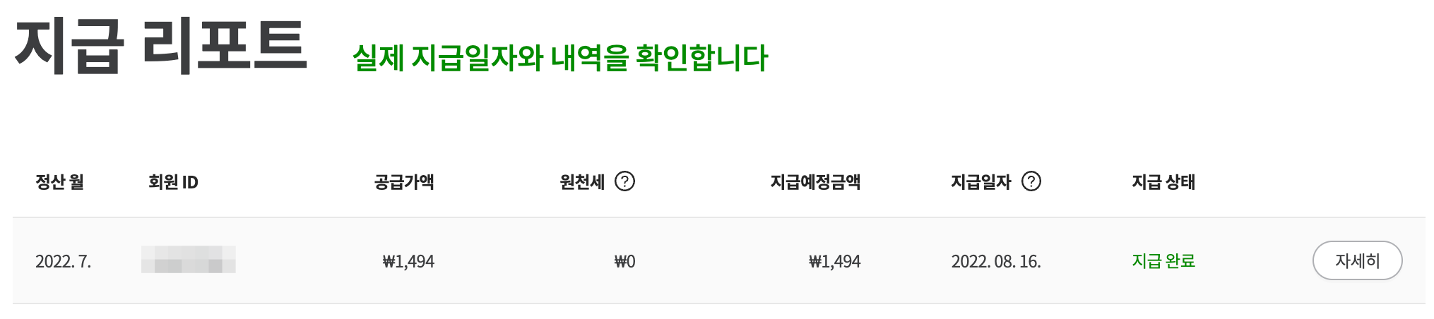 "저장 후 다음이동"을 누르면 뭔가 나타납니다. 1,494원 수입금액이 나타납니다.