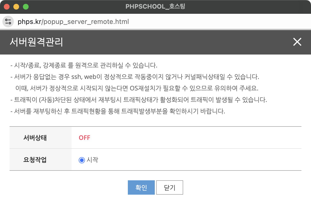 스쿨호스팅(phps.kr) 가상서버호스팅 재시작 하는 방법